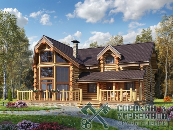 Сруб дома рубленый из бревна кедра диаметром 280мм, рубка сруба вручную в русскую чашу окорка бревна скобелем, размер сруба по осям 11,5х13,5м, общая площадь дома 194м2, объём бревна в срубе 160м3. Большой двухэтажный дом с эркером и вторым светом, удобная планировка, индивидуальный проект разрабатывался с заказчиком для круглогодичного проживания. Строительство сруба и установка на участок была летом 2015 года в Новосибирске в поселке Ваганов Парк.