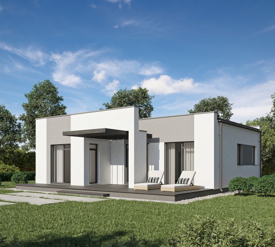 Современный дом для молодой семьи. светлое пространство с панорамными окнами, чтобы проводить время вместе.
